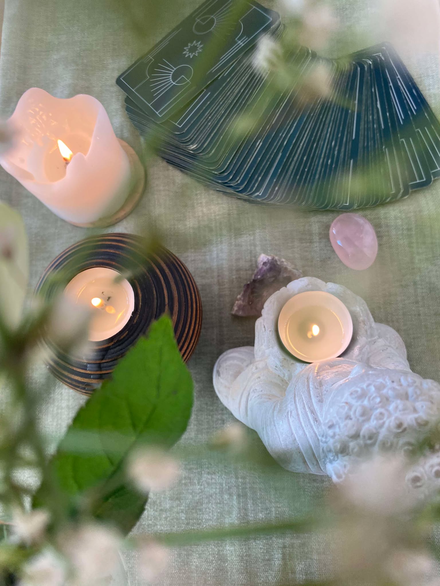 Le tirage de tarot personnalisé te permet d'avoir des réponses sur une ou plusieurs thématiques. Tarot introspectif et psychologique. Je ne fais pas de prédictions. La session énergétique qui suit est accompagnée par mes chants et mes instruments, elle permet de lâcher le mental, de t'apaiser en complément du tirage.